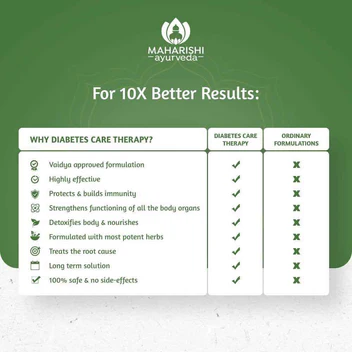 Maharishi Ayurveda Diabetes Care Therapy is a combination of proven and time-tested formulations that work synergistically to maintain optimal sugar levels in the body. The therapy naturally helps people with pre-diabetic conditions and Diabetes Mellitus. This therapy can be taken along with the prescription medication and prevents the body from diabetes-related complications.